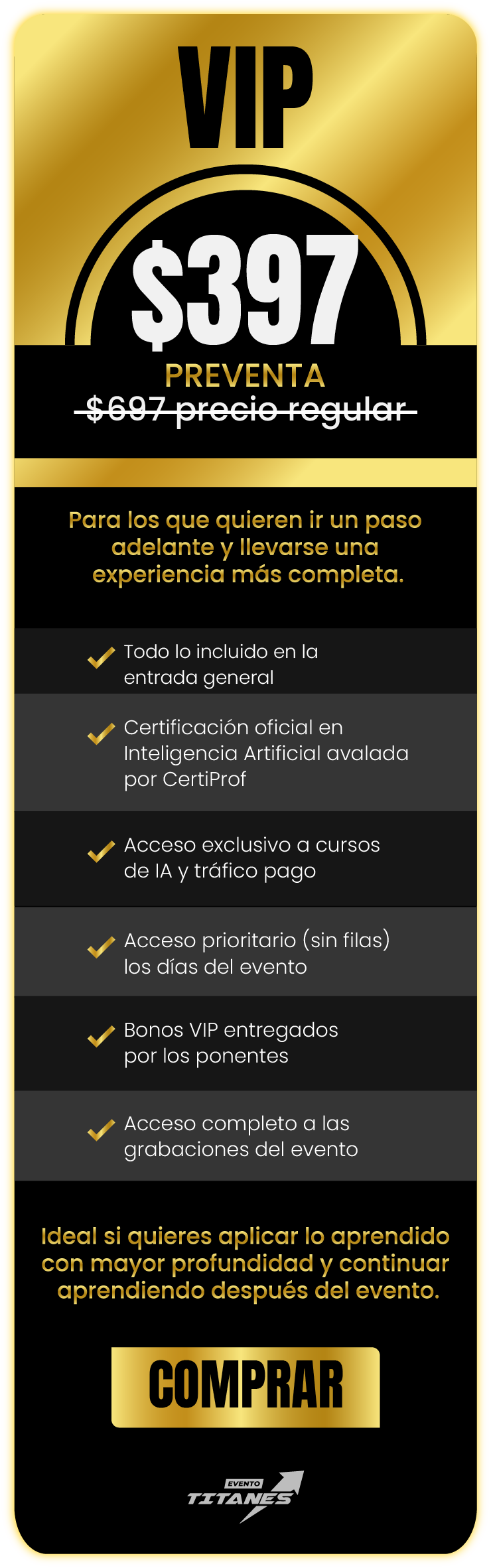 Vas a dejar de competir con tácticas obsoletas. Elevarás la forma en la que vendes, atraes clientes y tomas decisiones. Te vas con claridad, contactos y el plan para escalar.